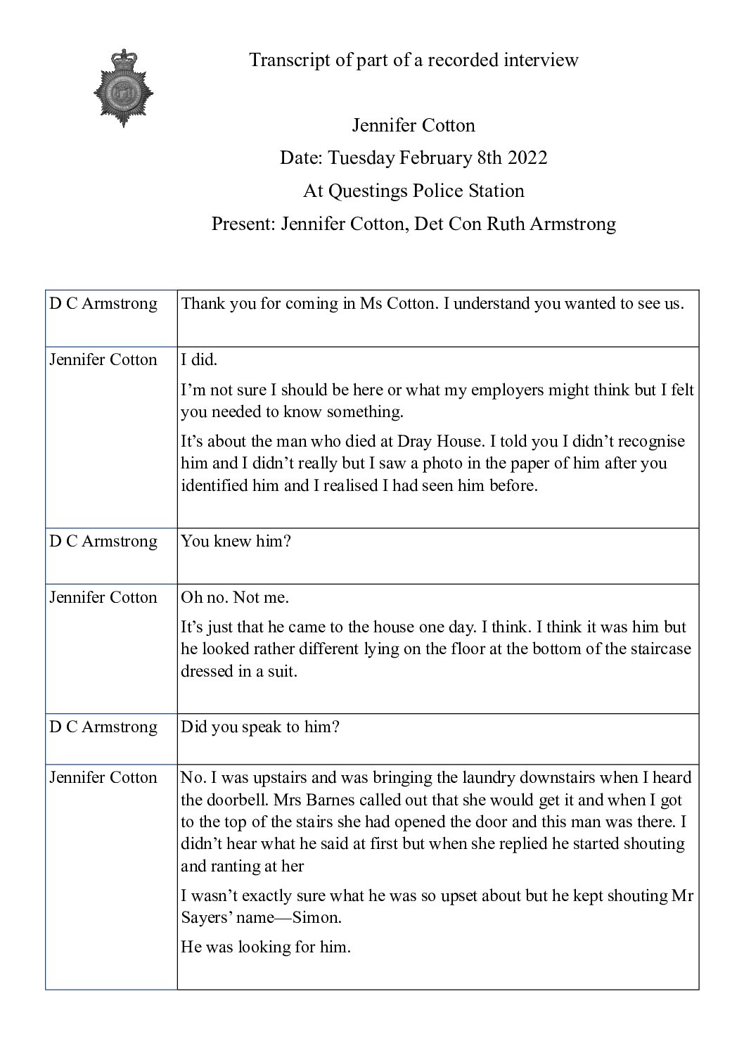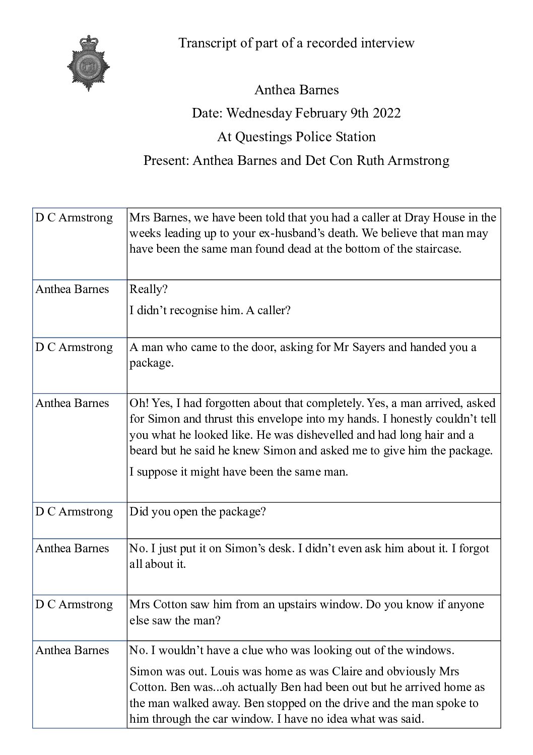 Anthea Barnes is the first wife of the late Mr Simon Sayers. She and her new husband, Louis, now live in a separate wing of Dray House.