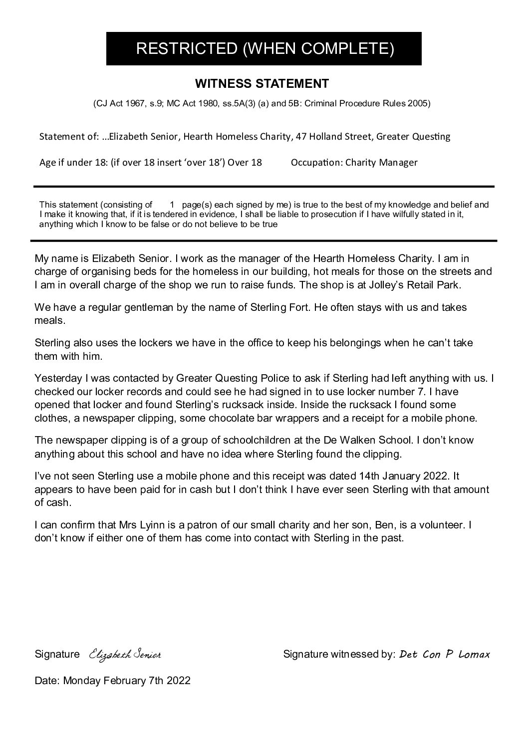 Interviews have been conducted with some of your suspects. Take a look and see if these help you narrow down the possible culprit.